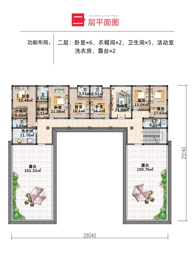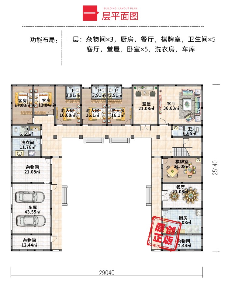 二進式院落,是在傳統一進院落的基礎上,沿縱向擴展而成。建筑的造型設計優雅而簡潔,在傳統中式風格與現代休閑風格之間平衡,形成新中式風格。功能布局從實用性出發,緊湊有序的規劃創造了一個獨具氛圍的空間。